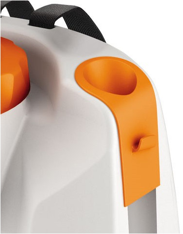 - Крепление ремней надёжно фиксируется в верхней и нижней части при навешивании. Плечевые ремни могут закрепляться в двух различных положениях и индивидуально регулироваться по росту пользователя. При необходимости инструмент можно легко навесить на ремни
