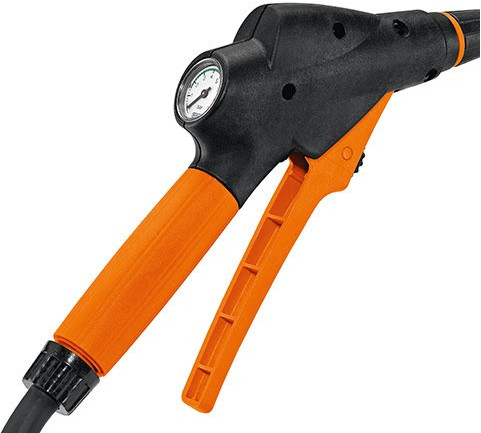 - Ранцевый опрыскиватель для профессионального использования. Максимально комфортное управление благодаря возможности монтажа насосного рычага с левой или с правой стороны, а также регулировке ширины и длины. Высококачественные ремни и эргономичная спинка для удобного ношения. Эргономичный запорный клапан с манометром