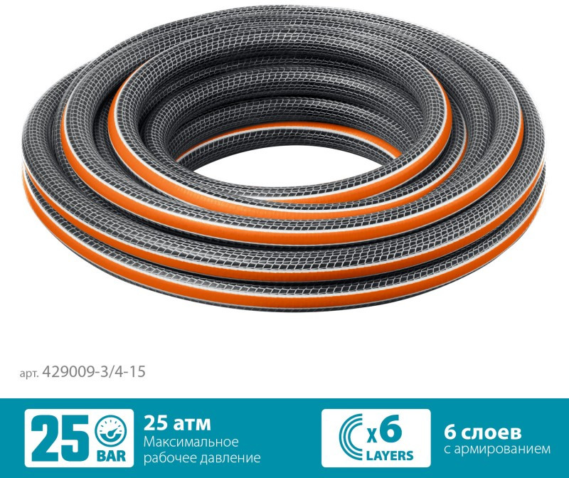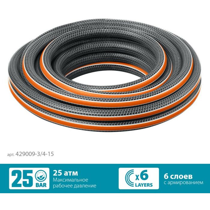 Поливочный шланг GRINDA PROLine ULTRA 6 15 м 3/4", 25 атм, шестислойный двойное армированиие [429009-3/4-15]