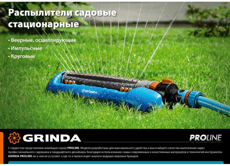 Профессиональные стационарные распылители GRINDA PROLine отличаются особой прочностью, надёжностью, удобством и долговечностью. Обеспечивают простое, быстрое и герметичное подключение к поливочной системе. Широкий ассортимент позволит подобрать модель идеально подходящую именно для ваших задач.
