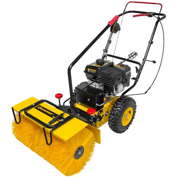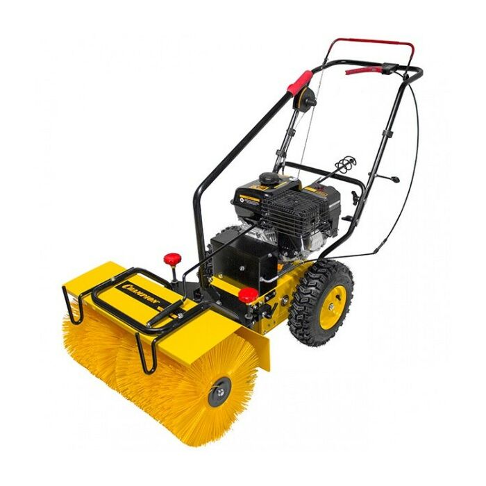 Машина подметально-уборочная Champion GS5562 с бензиновым двигателем мощностью 5,5 л.с. Объем топливного бака составляет 3,6 литра.