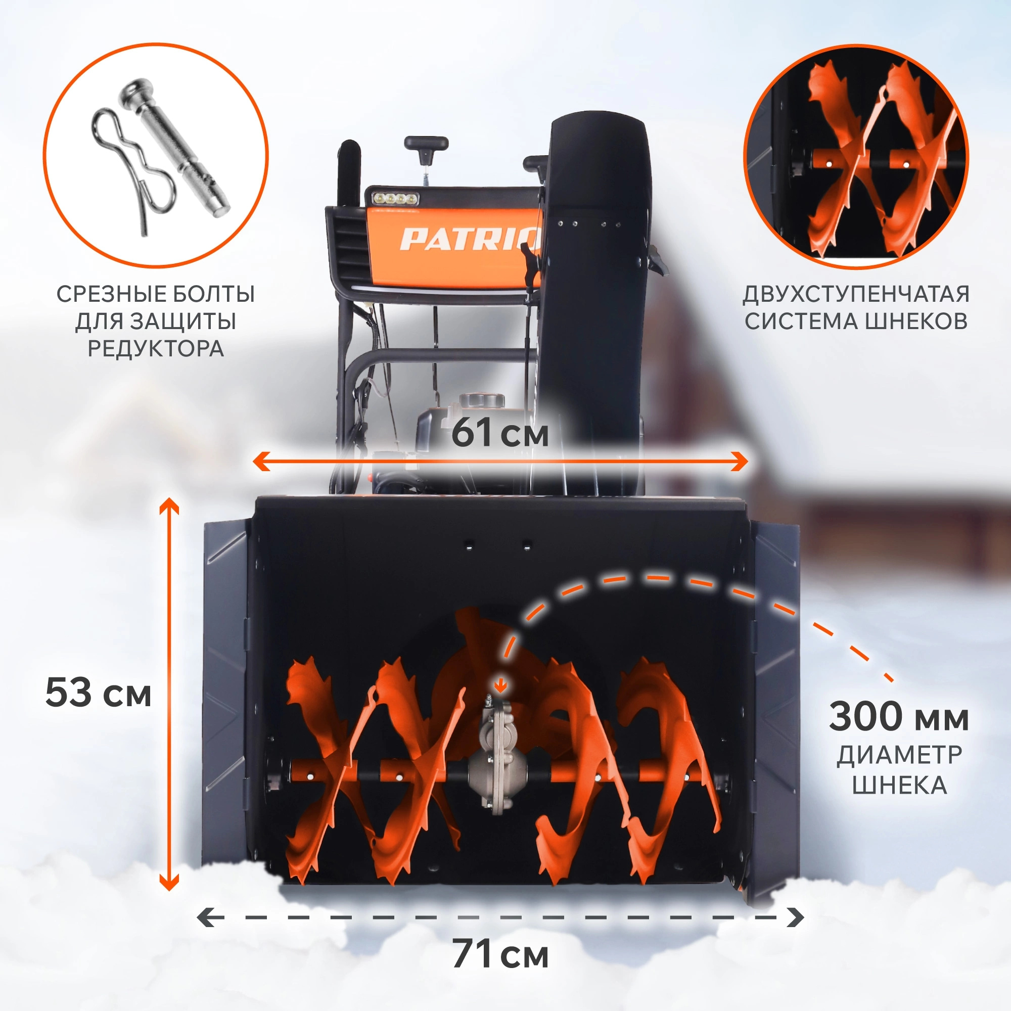 | Дальность выброса снега | 15 м |
