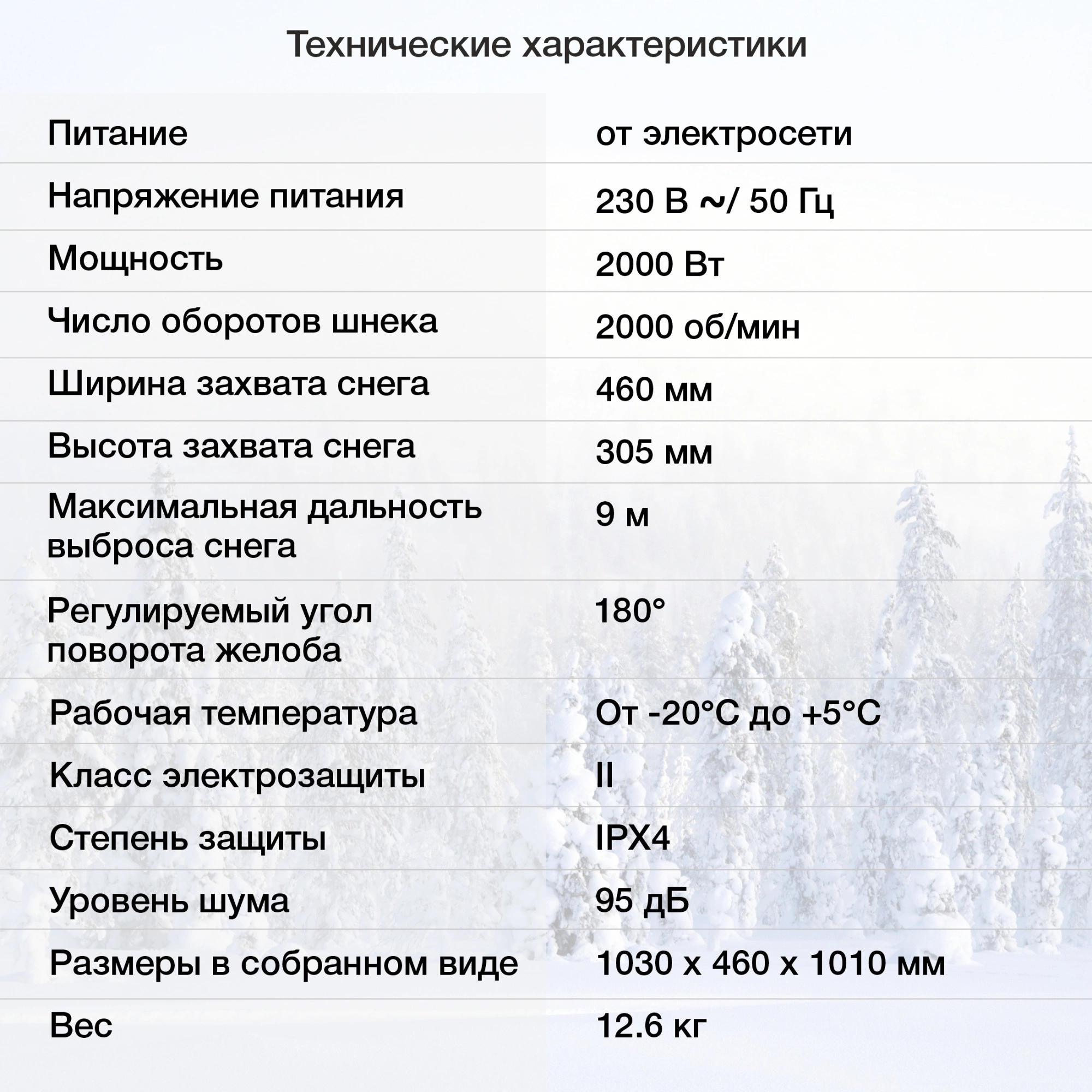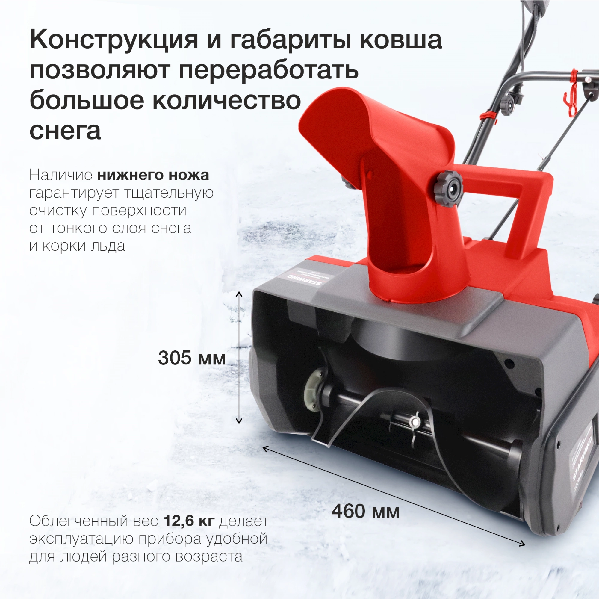 | Дальность выброса снега | 9 м |