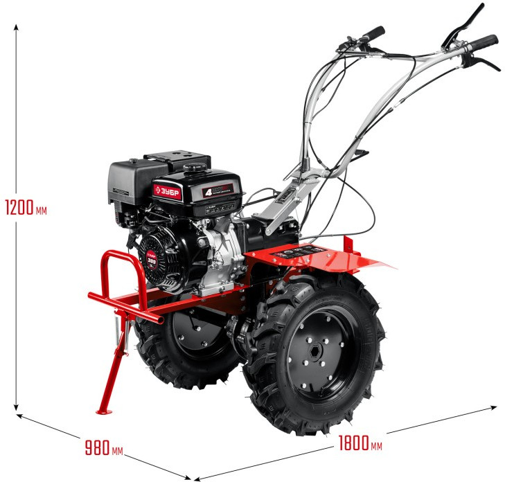 - Мощный четырехтактный двигатель ЗУБР надежен в эксплуатации