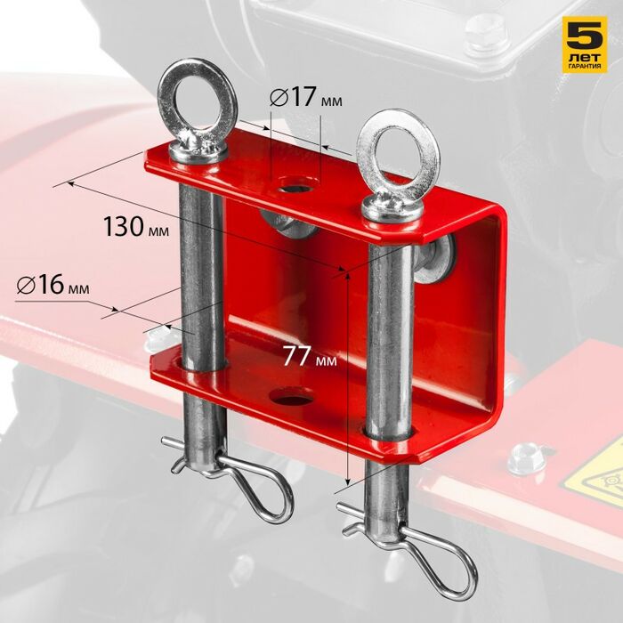 - Универсальная сцепка позволяет использовать различное навесное оборудование