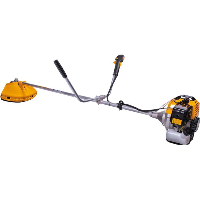 | Особенности | Прямая штанга с велосипедной рукояткой. Праймер подкачки топлива - запуск двигателя в сложных условиях. Бензиновый двигатель - работа без зависимости от источника энергии. Плечевой ремень для удобства при длительной работе. Кошение как молодой травы, так и густой поросли - универсальность. |