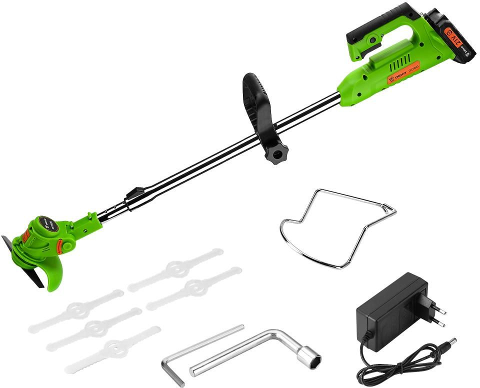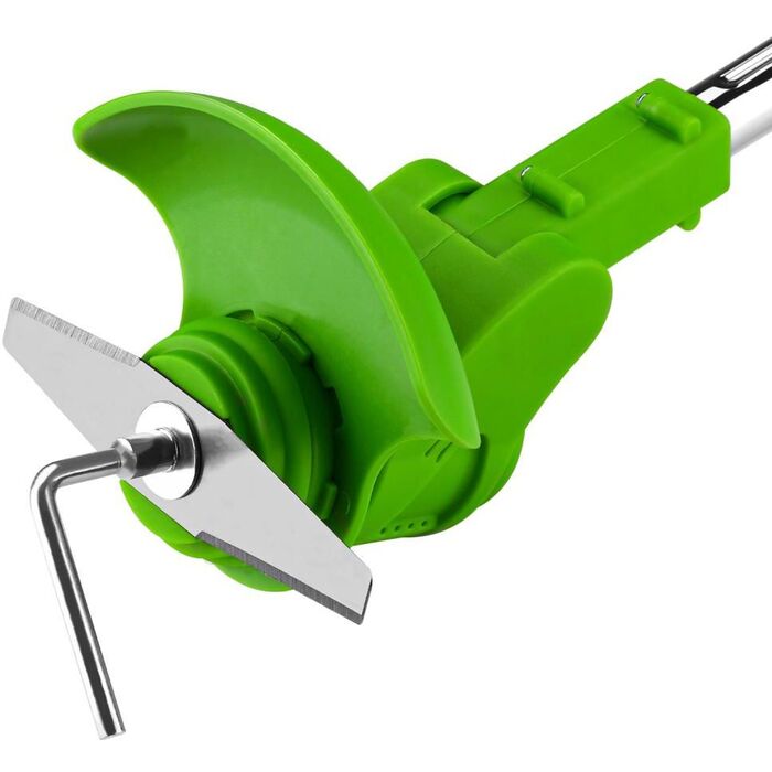 | Комплект поставки | триммер, аккумуляторная батарея, зарядное устройство, пластиковые лезвия - 5шт., металлическое лезвие, шестигранный ключ, торцевой ключ с внутренним шестигранником, рукоятка, скоба. |