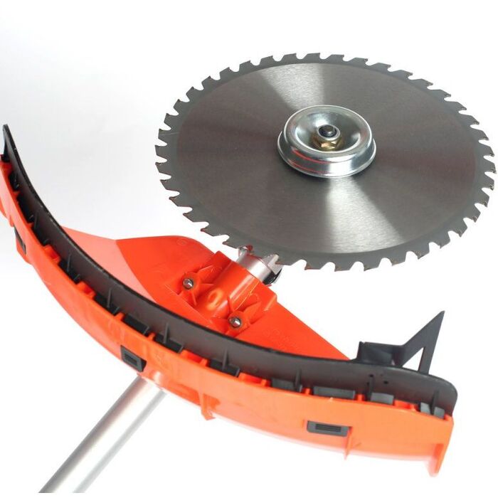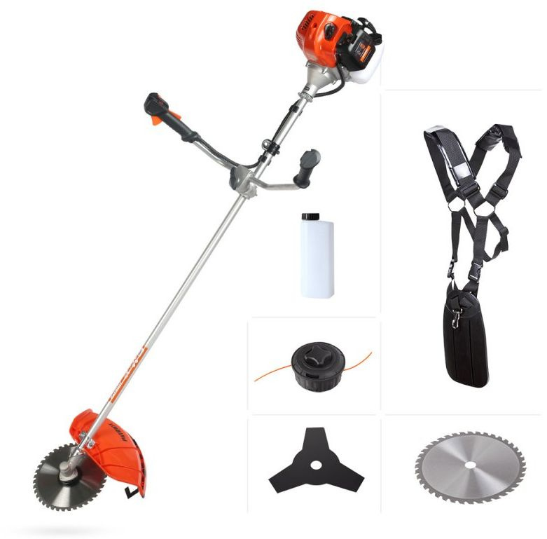 Комплект поставкиДвигатель в сборе с рукояткой, трансмиссионный узел в сборе, рукоятка, защитный кожух с крепежной планкой, набор креплений для сборки, ЗИП комплект для установки триммерного ножа, емкость для приготовления топливной смеси, триммерная катушка, ножи 40Т и 3Т, ранцевый ремень, инструкция.