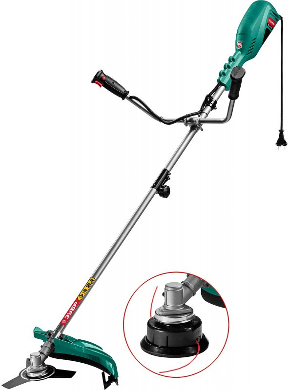 Универсальный инструмент на участке. Способна заменить газонокосилку и триммер, так как оснащается катушкой с леской (для мягкой растительности) и ножом (для грубой растительности). Большая мощность двигателя позволяет косить довольно густую и грубую растительность, а небольшие размеры - добраться до самых труднодоступных мест