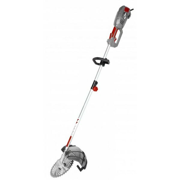 - Из отличительных особенностей модели стоит выделить разборную штангу, которая облегчает транспортировку и хранение инструмента. Также в комплект входит 3-х лопастной нож, позволяющий скашивать густую поросль