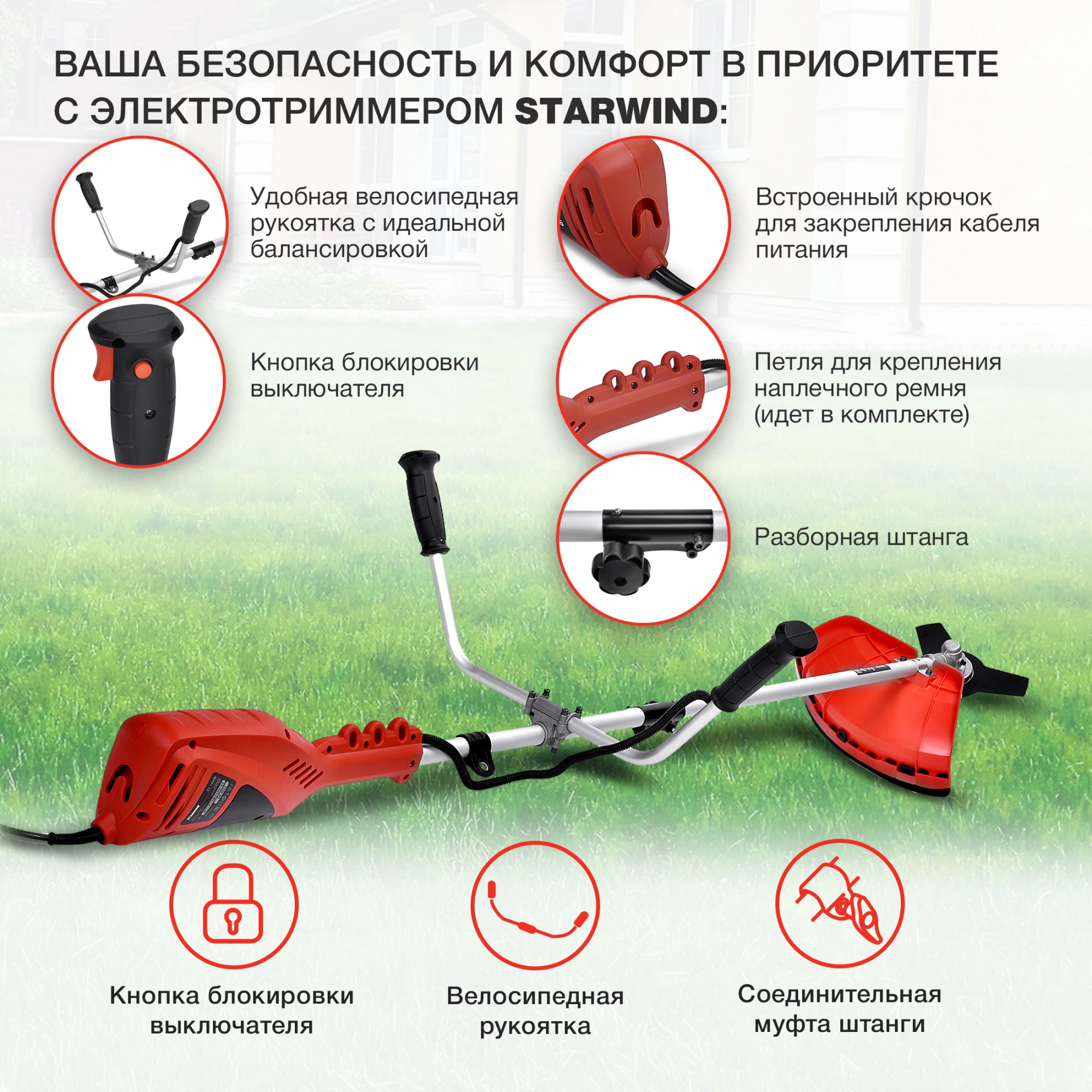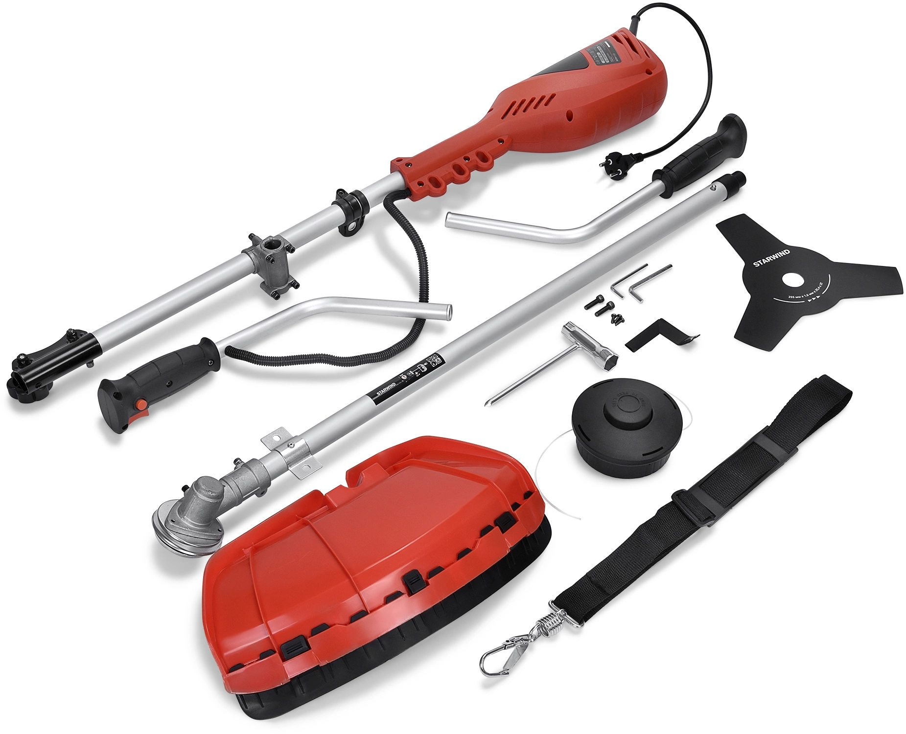 | Комплект поставки | Верхняя штанга триммера с блоком двигателя, Нижняя штанга триммера с редуктором, Катушка с леской, Триммерный диск (металлический нож), Рукоятка/комплект рукояток, Защитный кожух, Набор ключей, Комплект крепежа, Руководство пользователя с гарантийным талоном |
