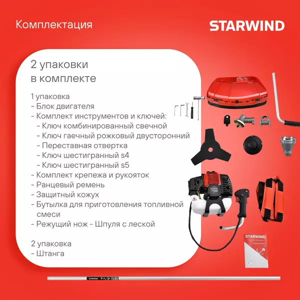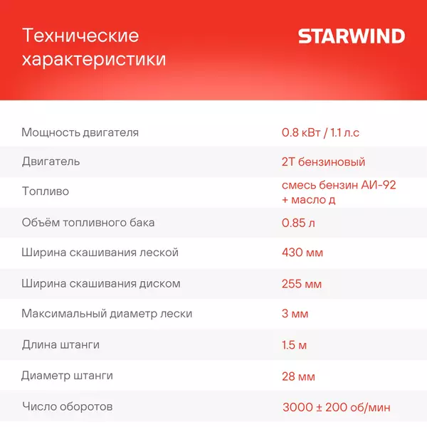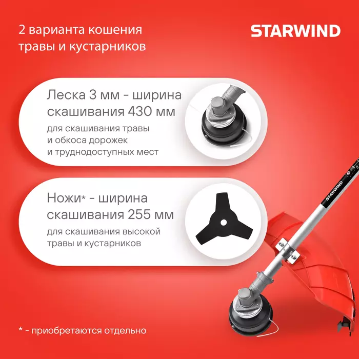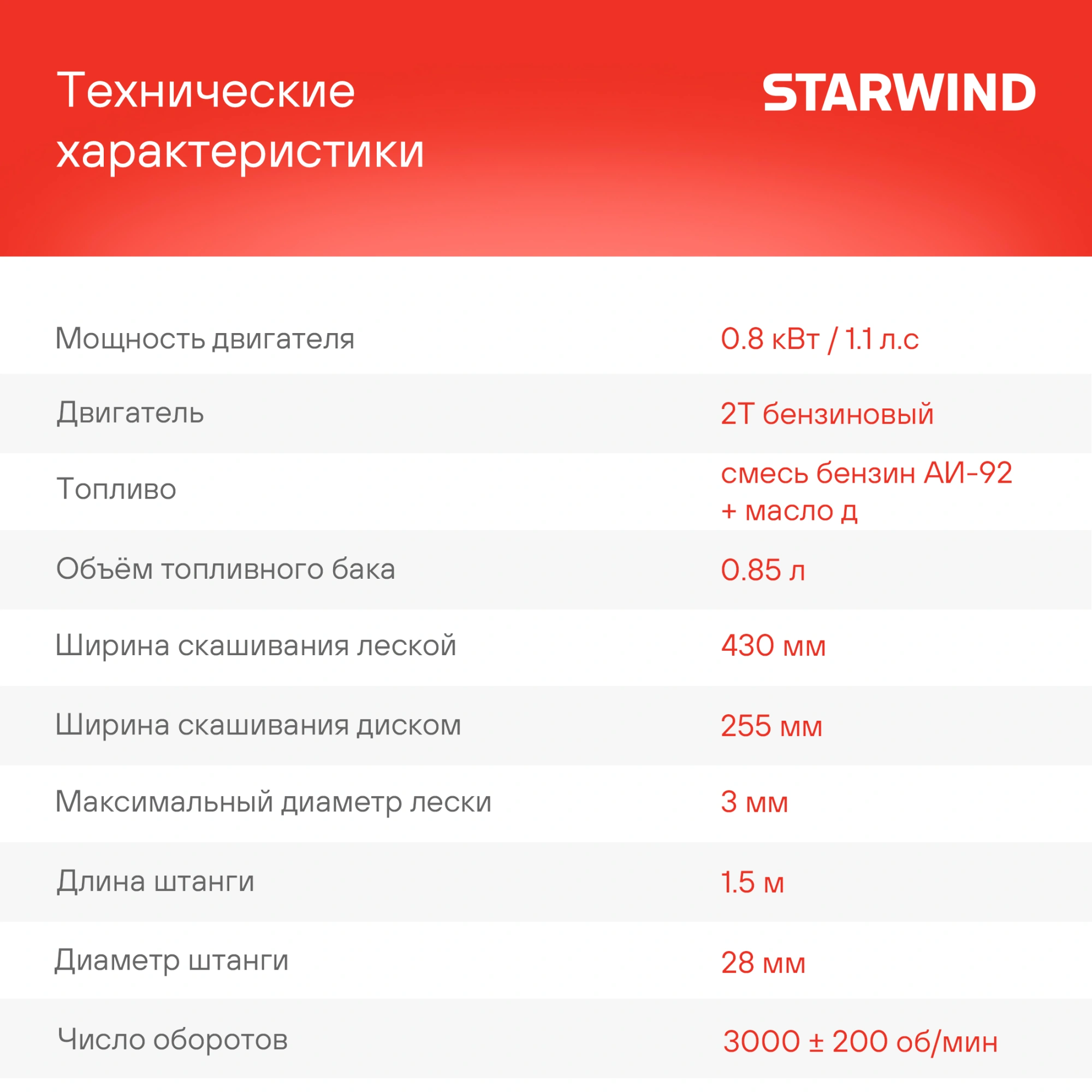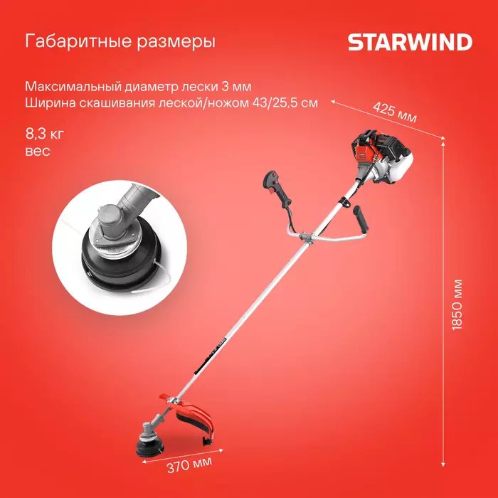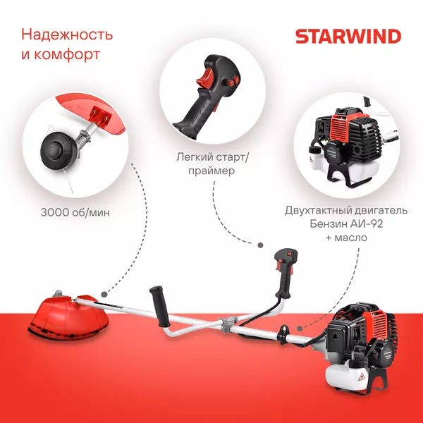 Триммер бензиновый STARWIND GT-33 800Вт 1.1л.с. неразбор.штанга леска/нож