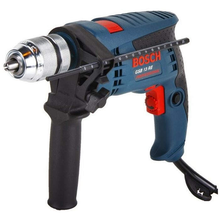 - Ударная дрель Bosch GSB 13 RE – компактный легкий прибор, идеально подходящий для работы в ограниченном пространстве. Несмотря на малые размеры, он снабжен мощным двигателем и может использоваться для сверления отверстий в легком бетоне или в особо твердой древесине