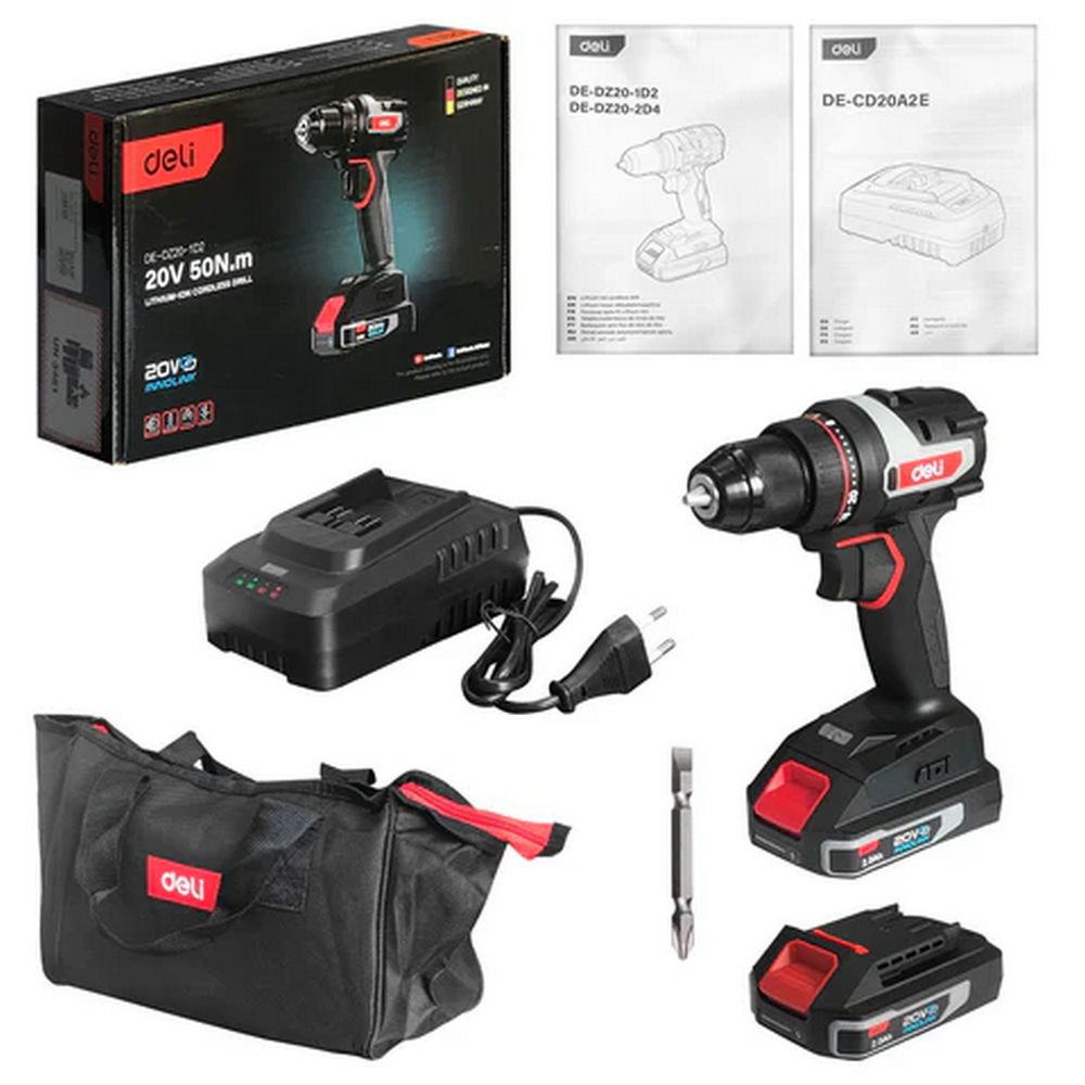 | Комплект поставки | Дрель-шуруповерт, документация, аккумулятор 2 Ач 2 шт, зарядное устройство, сумка |