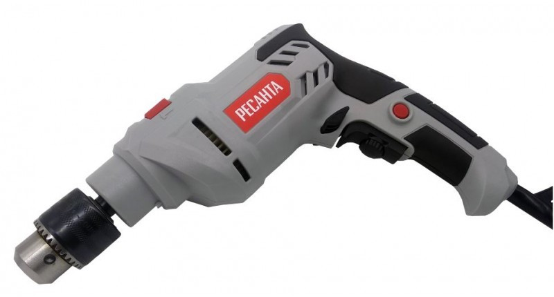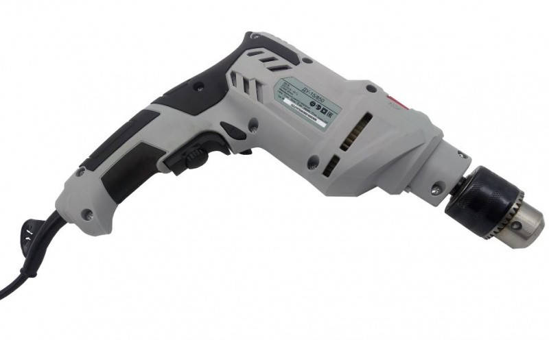 - Рукоятка имеет мягкую накладку и упор в нижней части для надежного захвата дрели во время работы