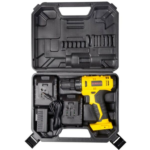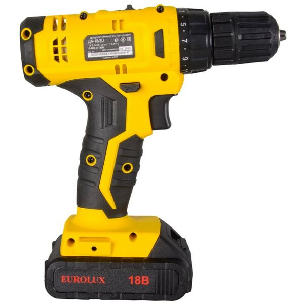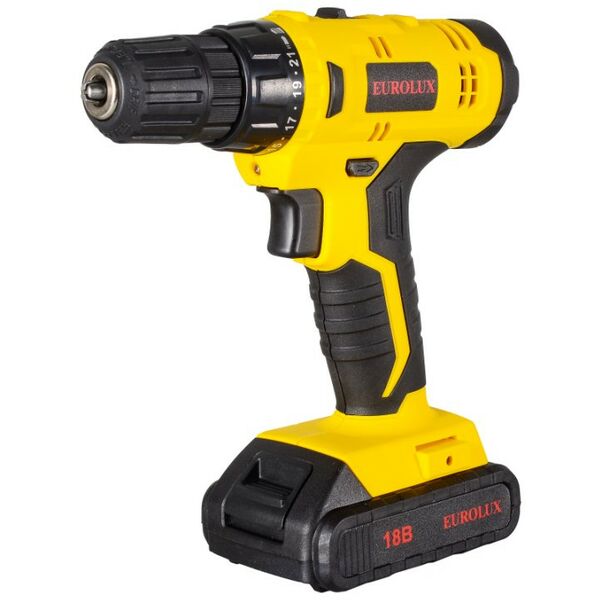 Аккумуляторная дрель-шуруповерт Eurolux ДА-18/2Li – ручной электроинструмент с регулируемым крутящим моментом, предназначенный для закручивания и откручивания шурупов, саморезов, винтов и других видов крепежных изделий, а также сверления отверстий в различных конструкционных материалах