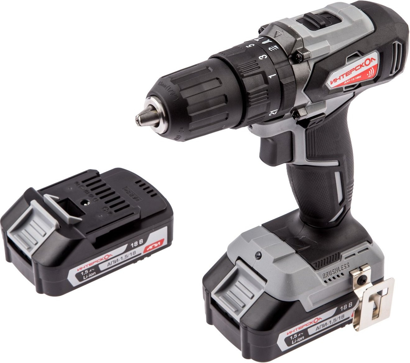 | Комплект поставки | Дрель-шуруповерт, аккумуляторный блок АПИ, 2 шт. 1,5 Ач., часовое моноблочное зарядное устройство, скоба, кейс пластмассовый, руководство по эксплуатации и инструкция по безопасности, гарантийный талон. |