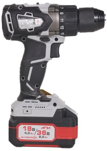 | Комплект поставки | Дрель-шуруповерт, АКБ АПИ 18/36В емкостью 4/2 А•ч - 2 шт., интеллектуальное зарядное устройство ЗУ-4/18 (арт. 2401.030), съемная клипса для крепления инструмента на поясе, пластиковый кейс, инструкция по эксплуатации и безопасности, гарантийный талон, список сервисных центров. |