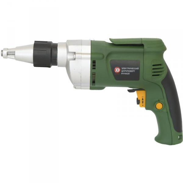 Безударный шуруповерт Калибр ЭШР-450 мощностью 450 Вт с возможностью регулировки частоты вращения.