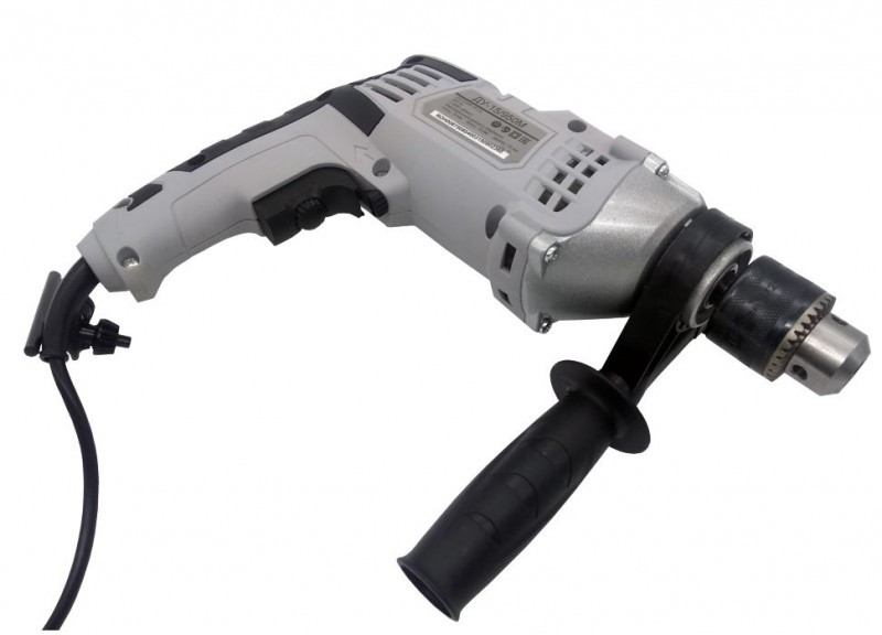- Рукоятка имеет мягкую накладку и упор в нижней части для надежного захвата дрели во время работы