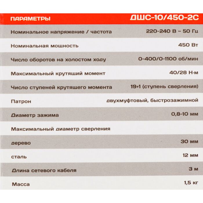 | Комплект поставки | Дрель-шуруповерт, угольные щетки (запасной комплект) |