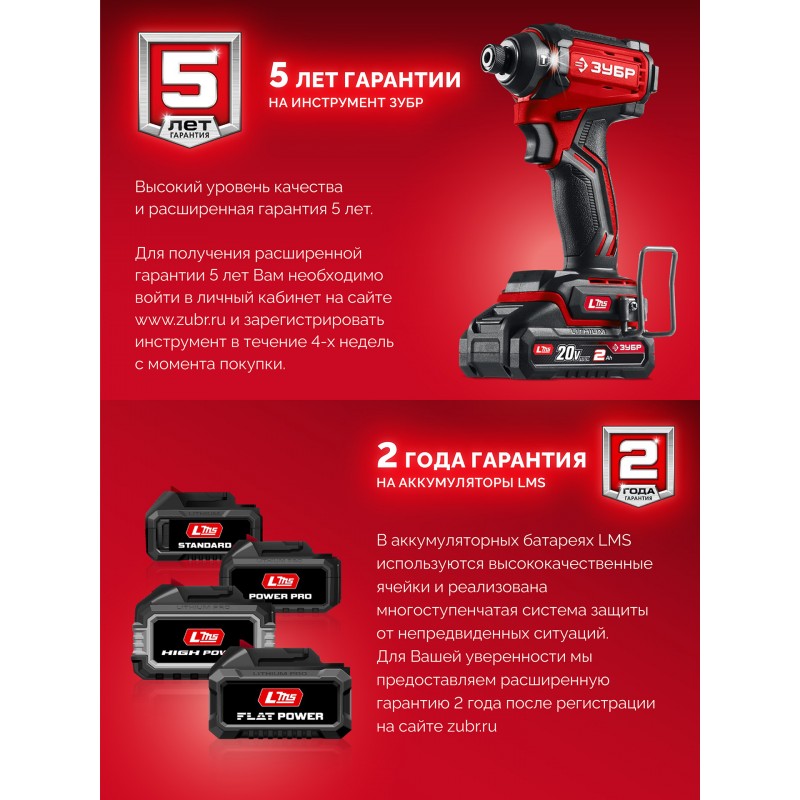 Бесщеточная дрель-шуруповерт ЗУБР системы LMS с увеличенным крутящим моментом предназначена для быстрого заворачивания саморезов до 8 мм диаметром и сверления отверстий до 30 мм в дереве. Длительная работа от одного заряда обеспечивается эффективным двигателем BRUSHLESS. Комплектация с двумя аккумуляторами позволяет работать практически без остановки