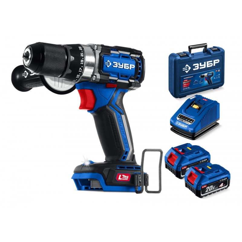Бесщеточная дрель-шуруповерт Зубр DB-70-42 20 В, 70 Н·м, 2 АКБ LMS (4 А·ч), кейс, ПРОФЕССИОНАЛ
