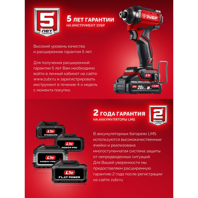- Долговечность и мощность: два аккумулятора повышенной емкости LMS (2.0 А*ч) обеспечивают длительную и эффективную работу.