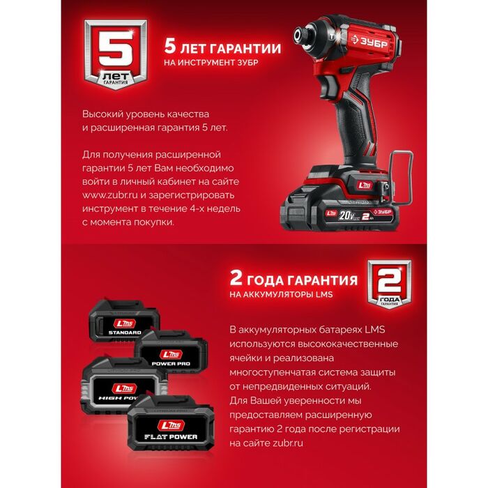- Два мощных аккумулятора системы LMS емкостью 2.0 А*ч, которые позволяют работать дольше и эффективнее, минимизируя время на зарядку.