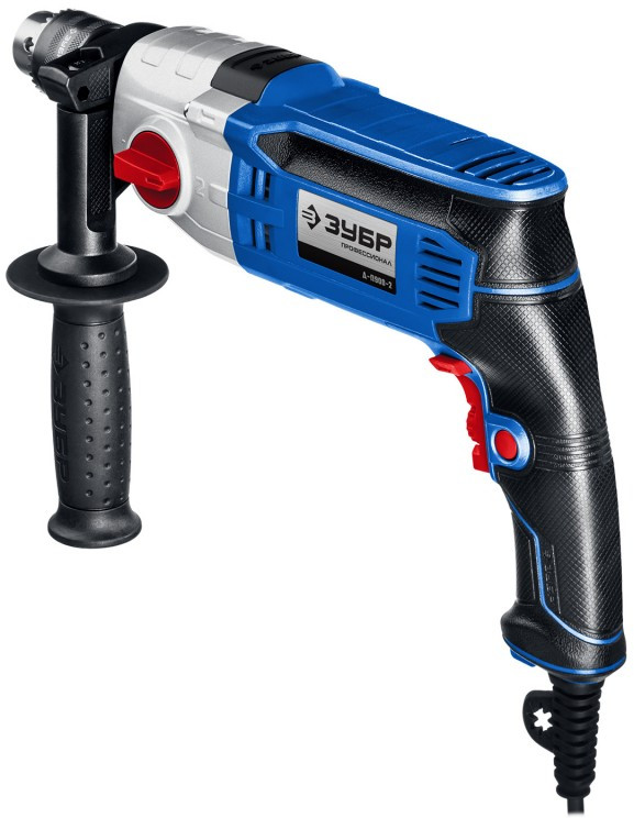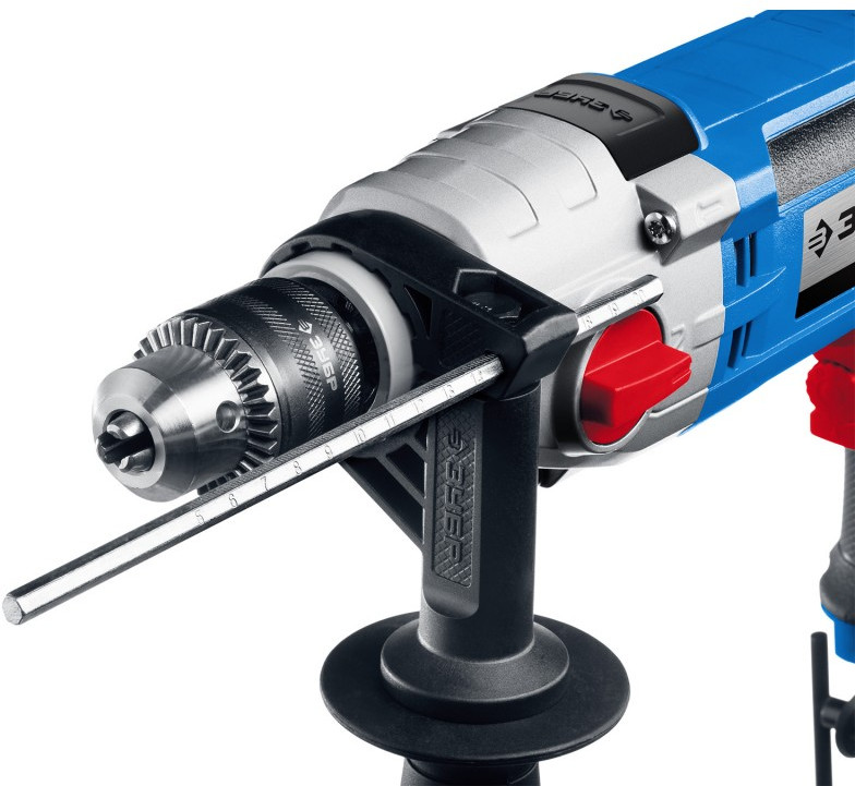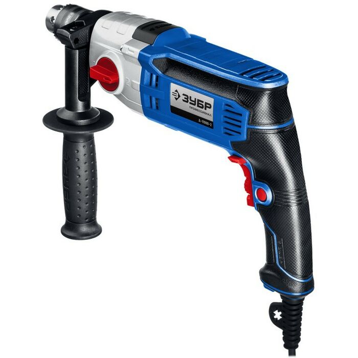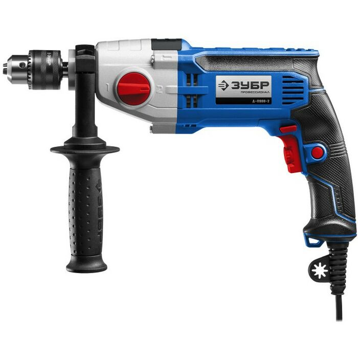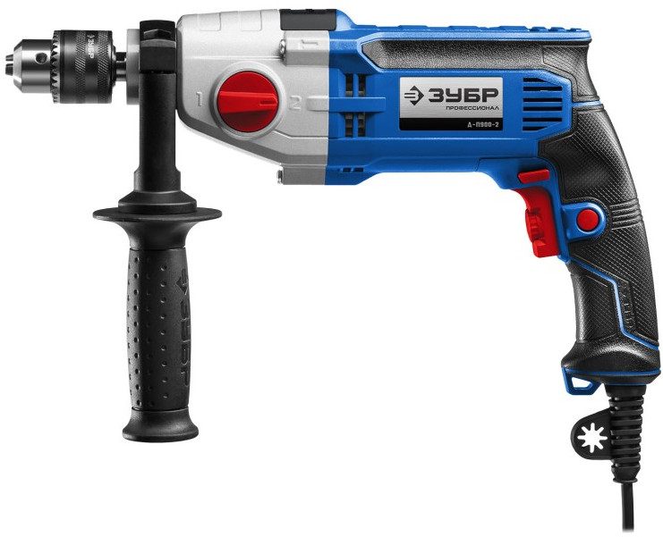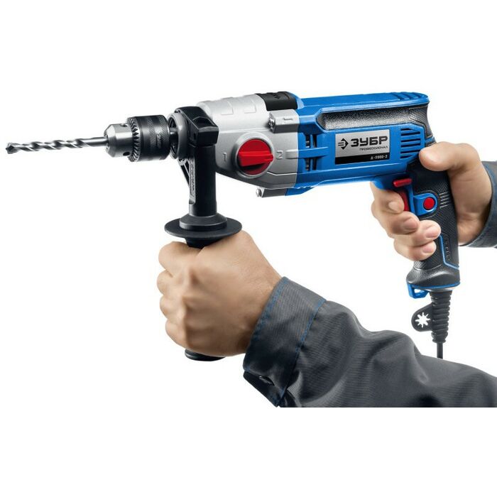 Универсальный инструмент для сверления отверстий в различных материалах (дерево, сталь и т. д.). Профессиональная дрель с мощным двигателем, двумя скоростными диапазонами, продуманной эргономикой и удобной дополнительной рукояткой