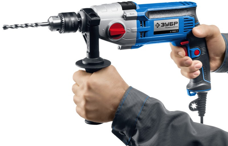 - Надежное удержание дрели благодаря обрезиненной основной и удобной дополнительной рукояткам