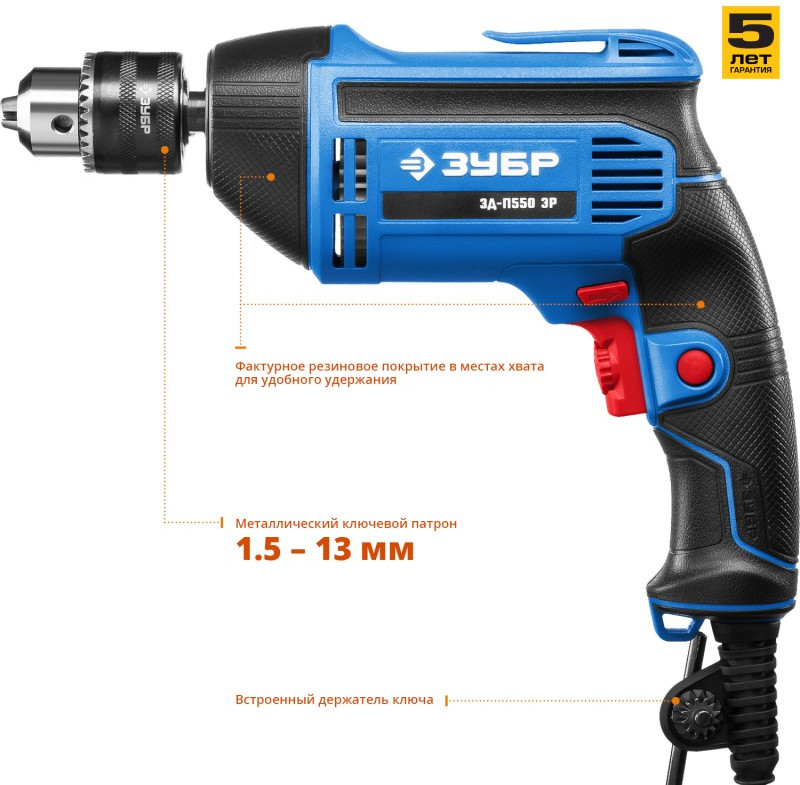 - Цельнометаллический ключевой патрон диаметром 13мм для установки, в том числе, крупного расходного инструмента