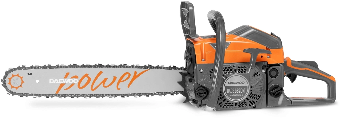 | Особенности | Магнезиевый стартер с системой Easy Start; Поршневая группа с никасиловым покрытием; Электронное необслуживаемое зажигание C.D.I.; Моментальная остановка цепи; Антивибрационная система Daewoo; Бесключевой доступ к воздушному фильтру; Эргономичная рукоятка включения; Металлический зубчатый упор |