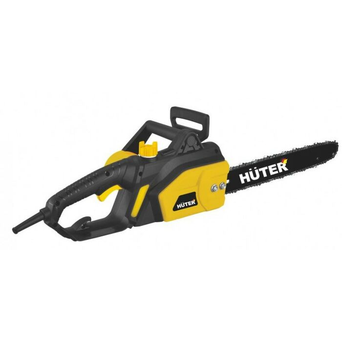 - Отличительными особенностями электропилы Huter являются простота и удобство в работе, ведь она не требует заправки топливом и работает от сети 220 В
