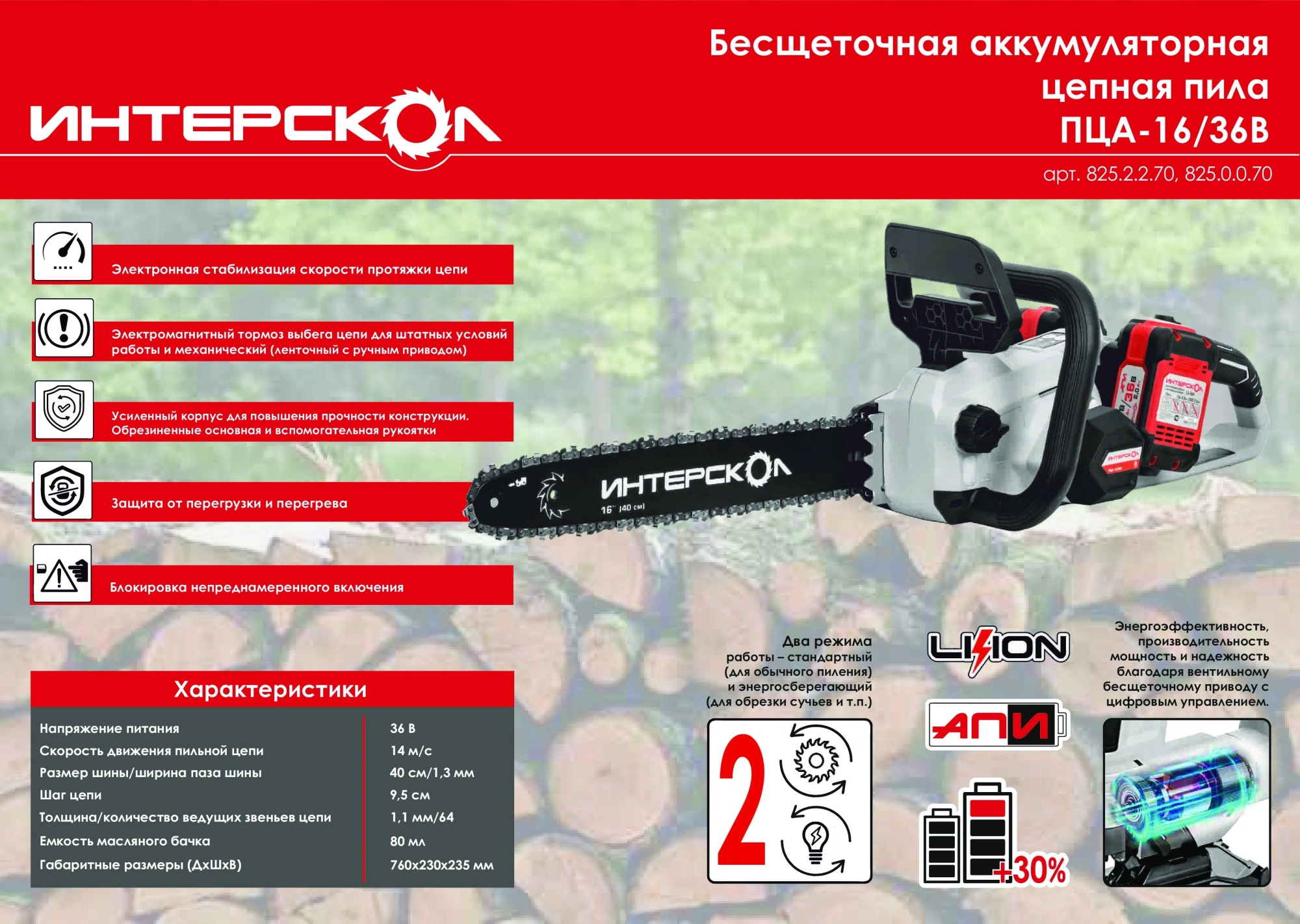 | Особенности | Два режима работы – стандартный (для обычного пиления) и энергосберегающий (для обрезки сучьев и т.п.). Совместимость с АКБ аккумуляторных платформ АПИ 18 В и АПИ 18/36 В |