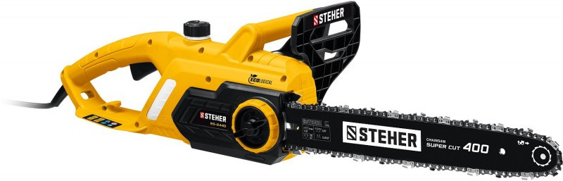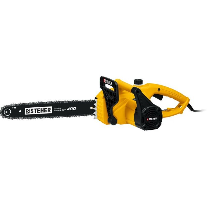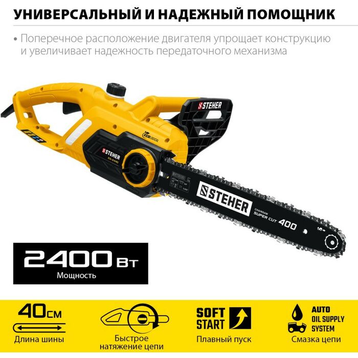 - Шина длиной 400 мм позволяет распиливать заготовки большого диаметра