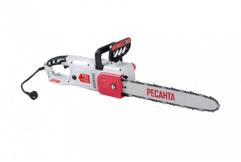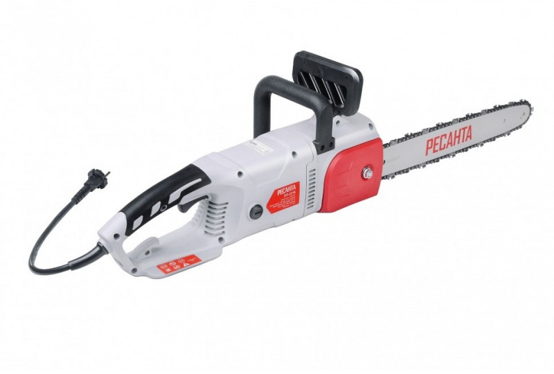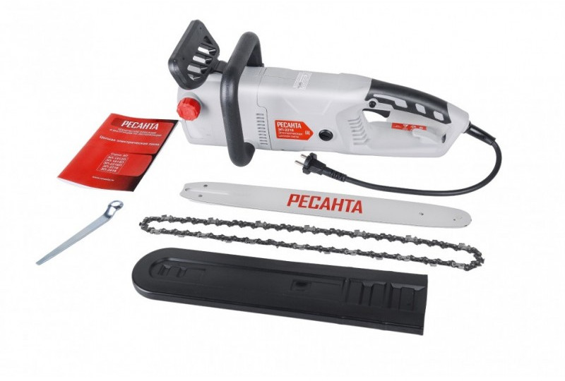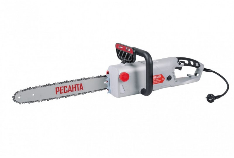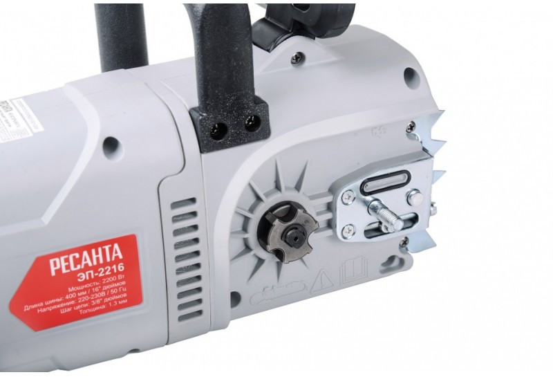 - Отличительными особенностями электропилы Ресанта являются простота и удобство в работе, ведь она не требует заправки топливом и работает от сети 220В. Также стоит отметить низкий уровень шума, создаваемый при работе, а также полное отсутствие выхлопных газов. Это означает, что вы можете использовать пилу не только на улице, но и в помещении при ремонтных и строительных работах. Вы можете легко регулировать натяжение цепи с помощью винта, расположенного на корпусе справа. К характеристикам, обеспечивающим комфортное пользование инструментом, также можно отнести автоматическую смазку цепи. Чтобы вы смогли определить уровень смазки для цепи, в корпусе есть смотровое окошко с делениями. Единственная особенность - это недостаточная мобильность, ведь пользоваться инструментом можно только в непосредственной близости от розетки переменного тока 220В. Этот легко исправить, используя переноску (с кабелем подходящего сечения!) или бензогенератор Ресанта. Для электропилы ЭП-2216 подойдут цепи со следующими параметрами: количество звеньев 57, шаг цепи 3/8, толщина ведущего звена 1.3, шина 161.