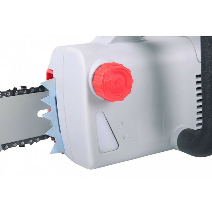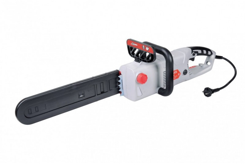 Преимущества: - Надежное удержание. Удобная задняя рукоятка небольшого размера с пусковым курком жестко сидит в руке, что способствует надежному удержанию электропилы.