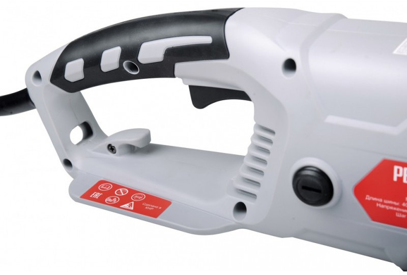 - Безопасность. Автоматический тормоз цепи в виде щитка обеспечивает безопасность работы с электропилой, в первую очередь, защиту ваших рук.