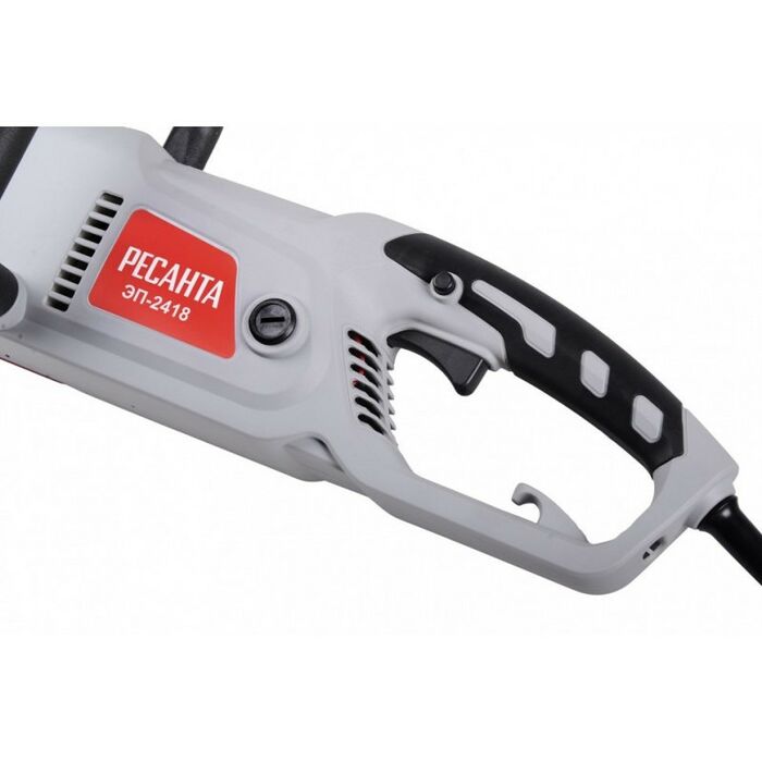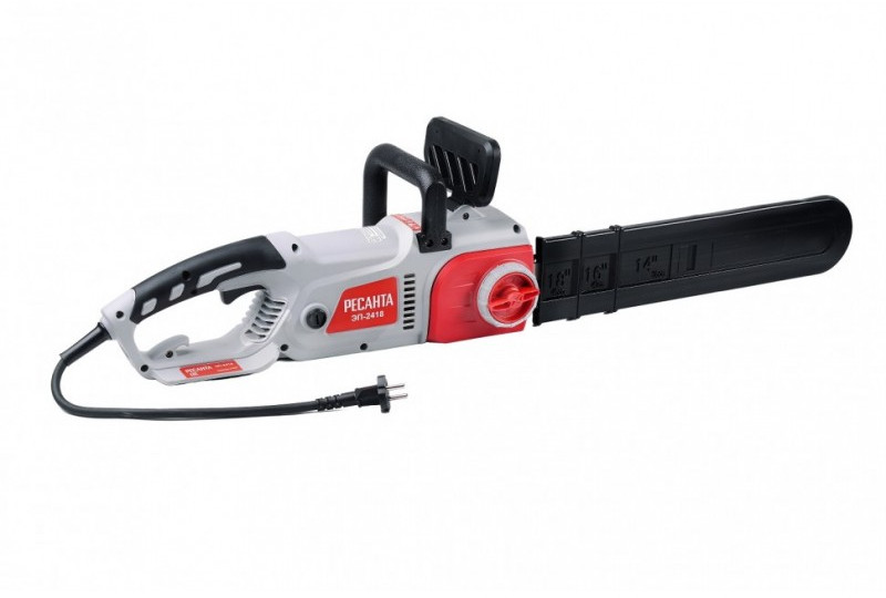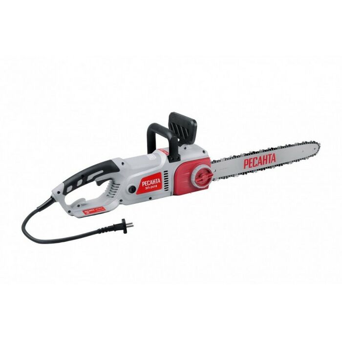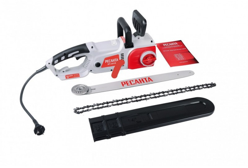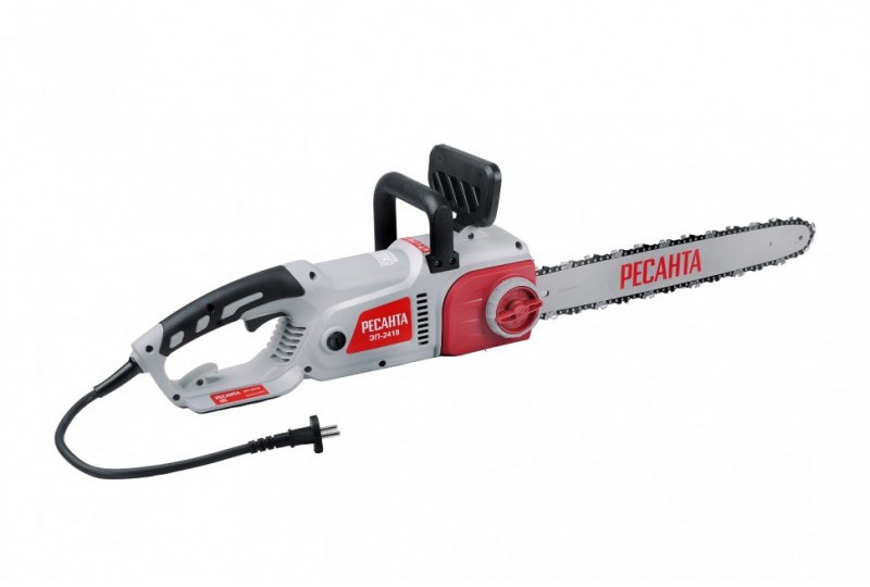 - Электропила Ресанта ЭП-2418 является самым мощным инструментом в линейке бытовых пил немецкого производителя. Аппарат служит для лёгких и средних работ: распиловка бревен, валка садовых деревьев, обрезка сучьев. Благодаря обрезиненной рукоятке держать такой агрегат в руках удобно и комфортно. Привод цепи осуществляется за счет электродвигателя, который работает от сети переменного тока 220В.