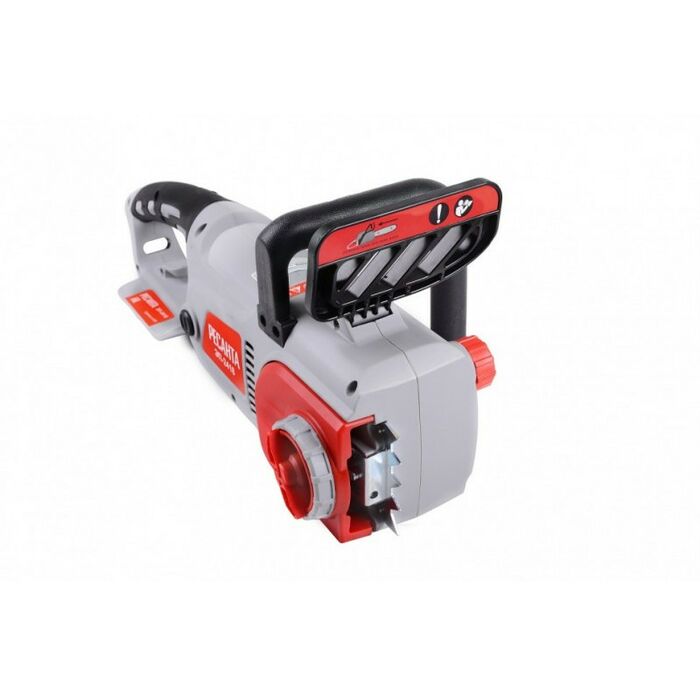 - Безопасность. Автоматический тормоз цепи в виде щитка обеспечивает безопасность работы с электропилой, в первую очередь, защиту ваших рук.
