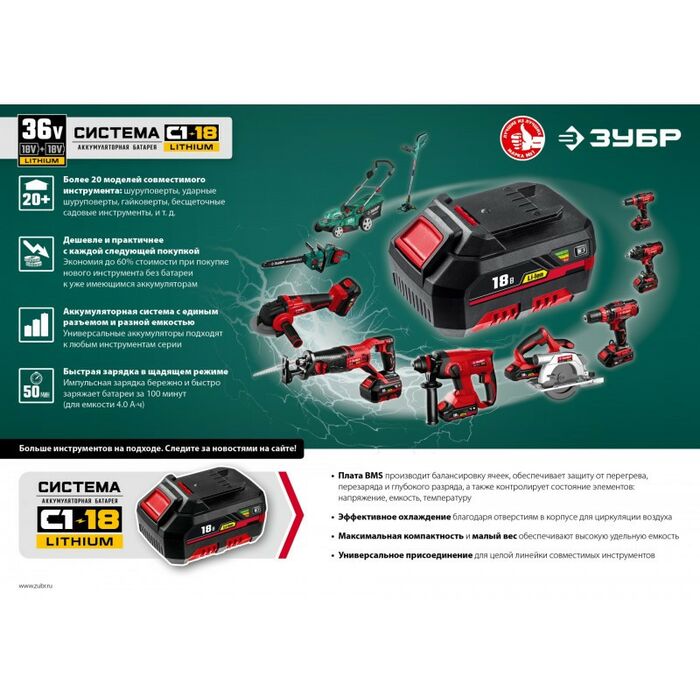 - Изделие совместимо с батареями единой аккумуляторной системы С1-18В