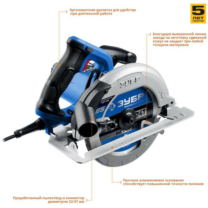 - Циркулярная пила для всех видов распиловочных работ в серии профессионального инструмента ЗУБР. Максимальная глубина пиления 65 мм позволяет пилить все виды фанеры, любые листовые материалы, а также большинство типоразмеров досок. Жесткость конструкции обеспечивает точность пиления, а удобные рычаги фиксации выбранных настроек и оптимальная эргономика рукояток помогают работать быстрее и комфортнее