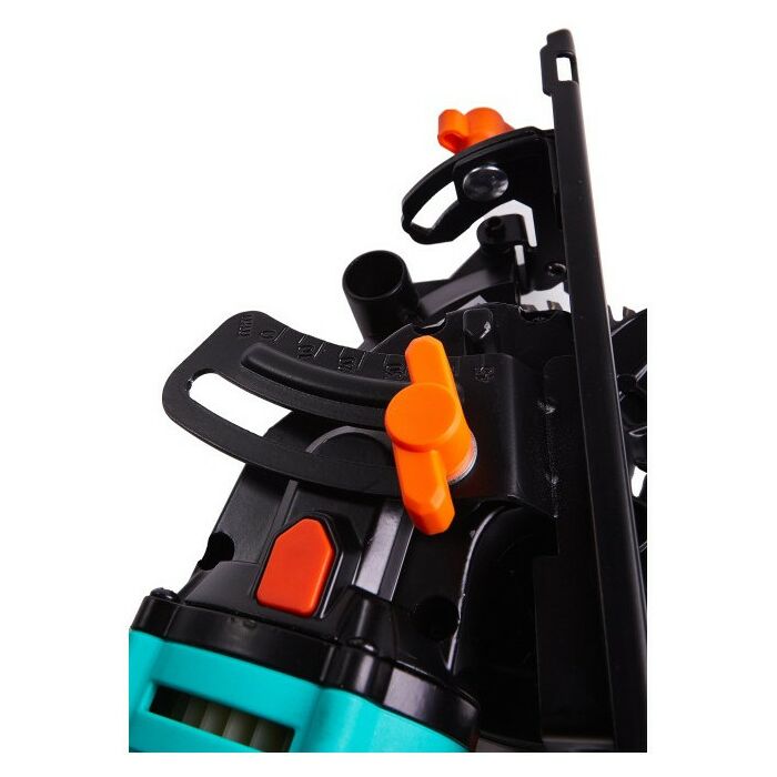 - Благодаря своей конфигурации инструмент очень прост в обращении и управлении даже одной рукой. При этом модель оснащена верхней рукояткой-кнопкой, посредством которой инструмент оптимально лежит в руке и обеспечивает простое ведение по линии реза и высокую точность при пилении и резке