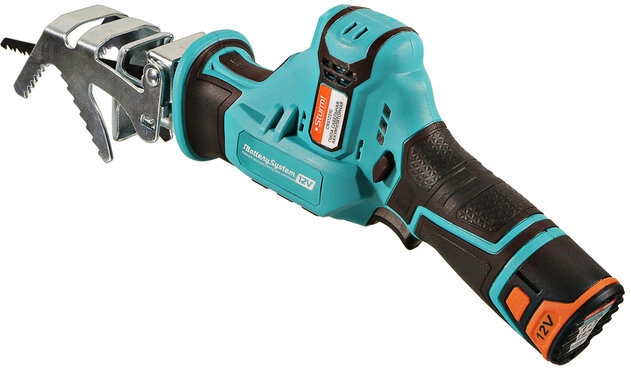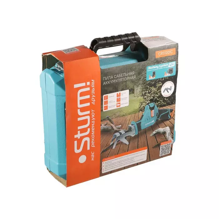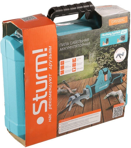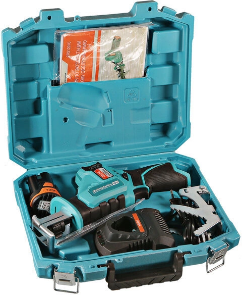 | Комплект поставки | Пила сабельная аккумуляторная, пильное полотно по дереву, аккумуляторная батарея 2 Ач, зарядное устройство, А-образный упор (адаптер для веток), пластиковый кейс, инструкция по эксплуатации, инструкция по безопасности. |