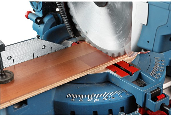 Торцовочная пила BOSCH GTM 12 JL имеет встроенную подсветку для работы в трудноосвещенных помещениях. Предусмотрена блокировка шпинделя для простой смены пильного диска.