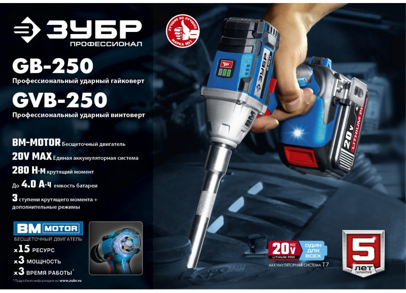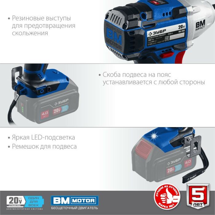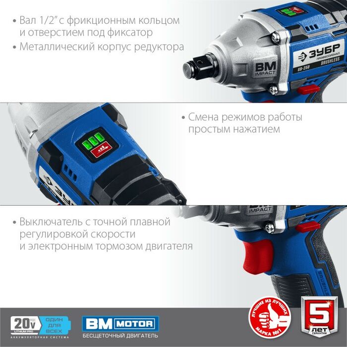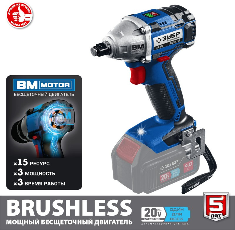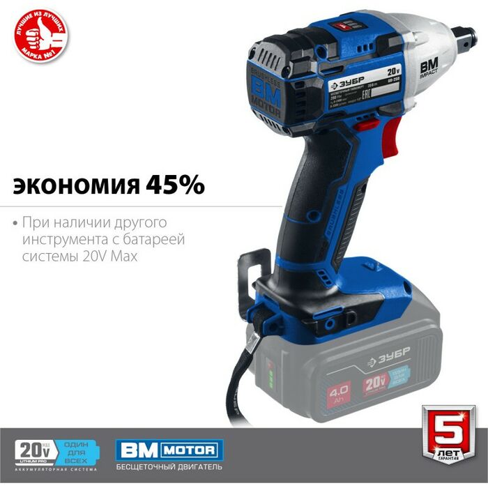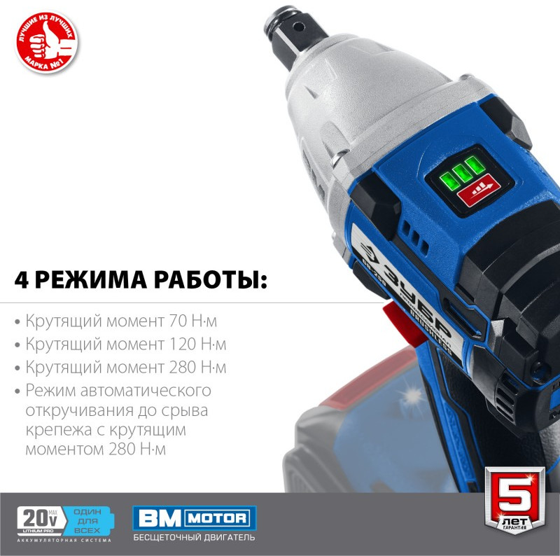 - Профессиональное изделие с передовым BRUSHLESS двигателем обеспечивает крутящий момент до 280 Нм и долгий срок службы. Полностью программно-управляемый двигатель способен работать с различными уровнями крутящего момента (для сборки конструкций, закручивания колес, затягивания крупного крепежа), реализовывать дополнительные режимы работы и оптимально потреблять заряд при любой нагрузке