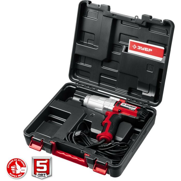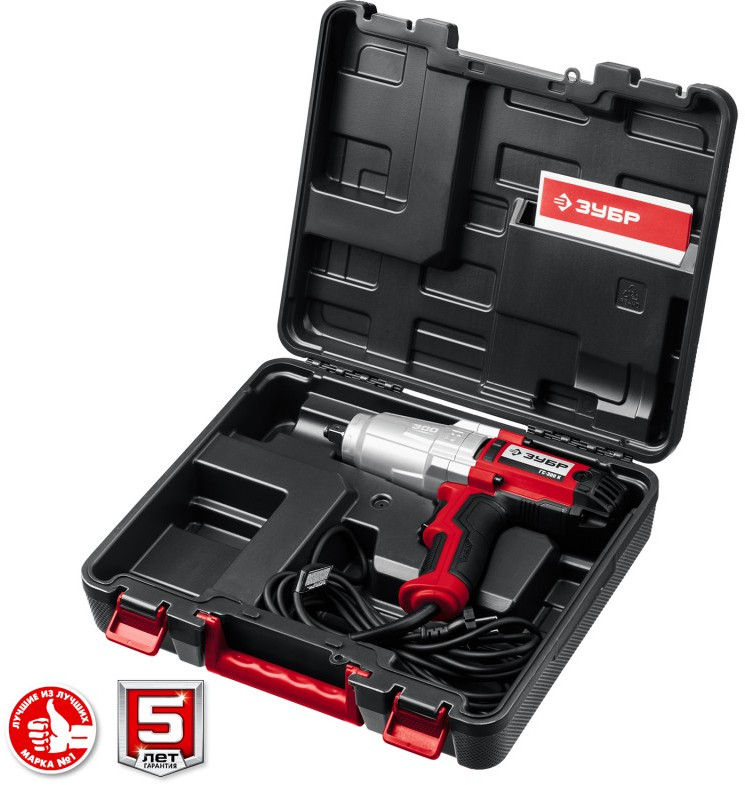 - Гайковерт ″ЗУБР″ - мощное изделие для заворачивания/отворачивания крепежа. Огромный крутящий момент, не ограниченный зарядом батареи, и надежная конструкция позволяют использовать его для самых тяжелых работ в любой области. Кейс в комплекте - дополнительное удобство хранения и переноски