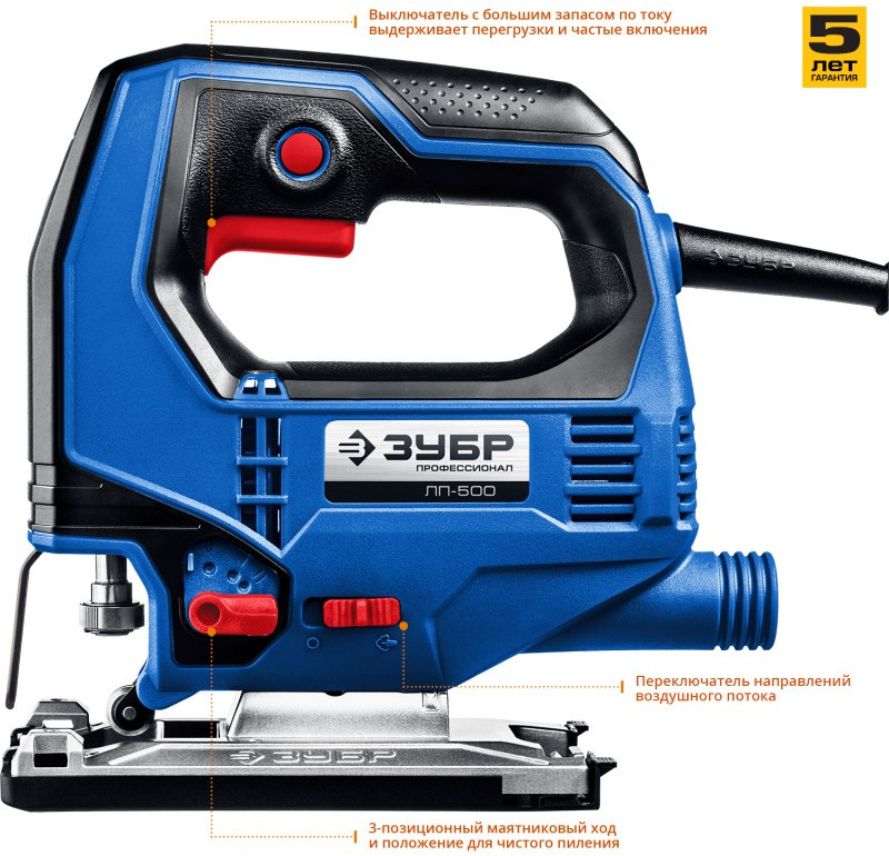 - 3-позиционный маятниковый ход для обеспечения как быстрого, так и чистого пиления