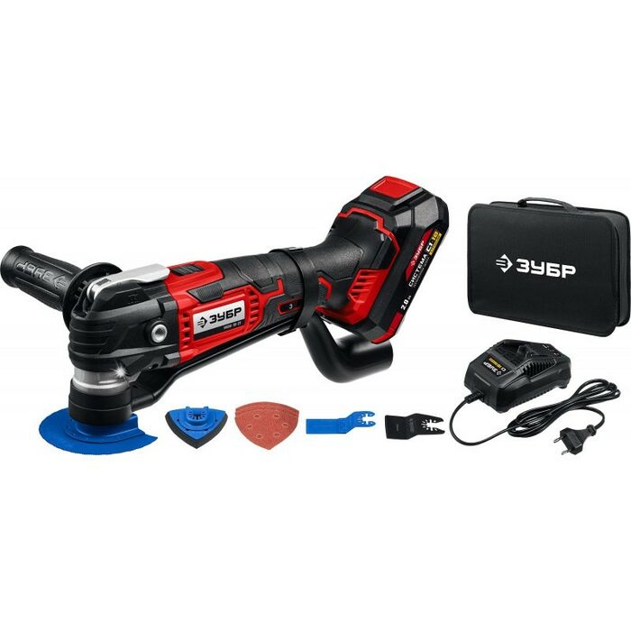 Реноватор аккумуляторный ЗУБР - универсальное устройство для разных строительных работ (резка, шлифование), особенно в труднодоступных местах и в отсутствие доступа к электричеству. Большой угол колебаний 3 градуса в сочетании с широким спектром регулировки частоты обеспечивают эффективную работу с любым материалом. Расширенная комплектация включает в себя базовый набор насадок для начала работы сразу после покупки и удобную сумку для хранения и переноски